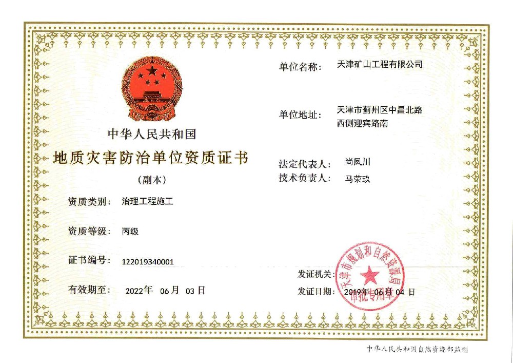地質災害治理工程施工資質證書